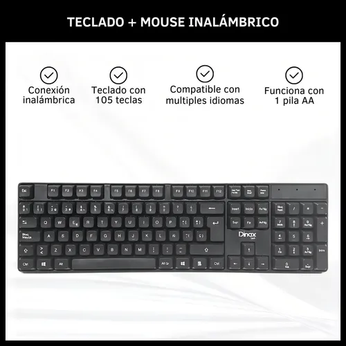 Mouse y teclado inalambrico Dinax DX-COMTC32